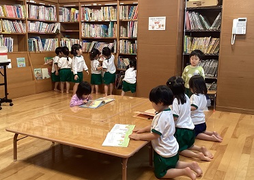 読書だけでなく、食育やサークルタイム、職員同士の語らいにも活用している落ち着いた空間です。